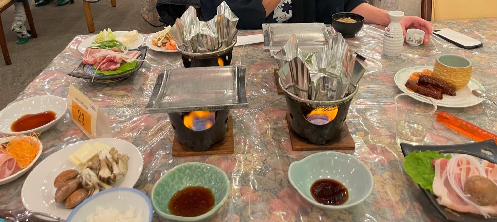 しゃぶしゃぶができる深めの陶板焼きもあるので、蟹雑炊なんかも作れちゃいます。